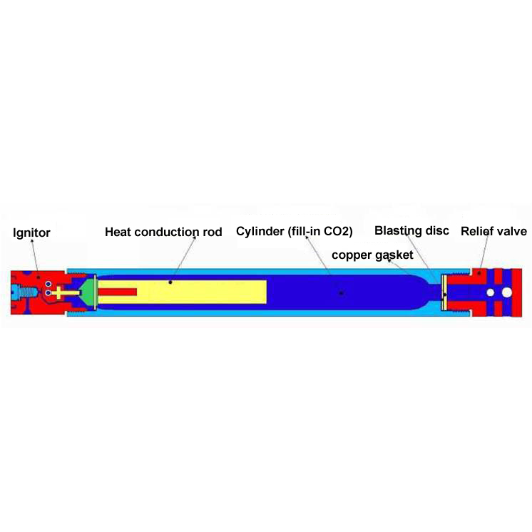 Carbon Dioxide (CO2), it can be liquefied under high-pressure situation. Filling the liquefied CO2 into a special cylinder (blasting cartridge ) by high-pressure pump, then installs safety diaphragm, bursting disc, heat conduction rod, gasket ring, and tighten the end cap, that finish the preparation works of the blasting.